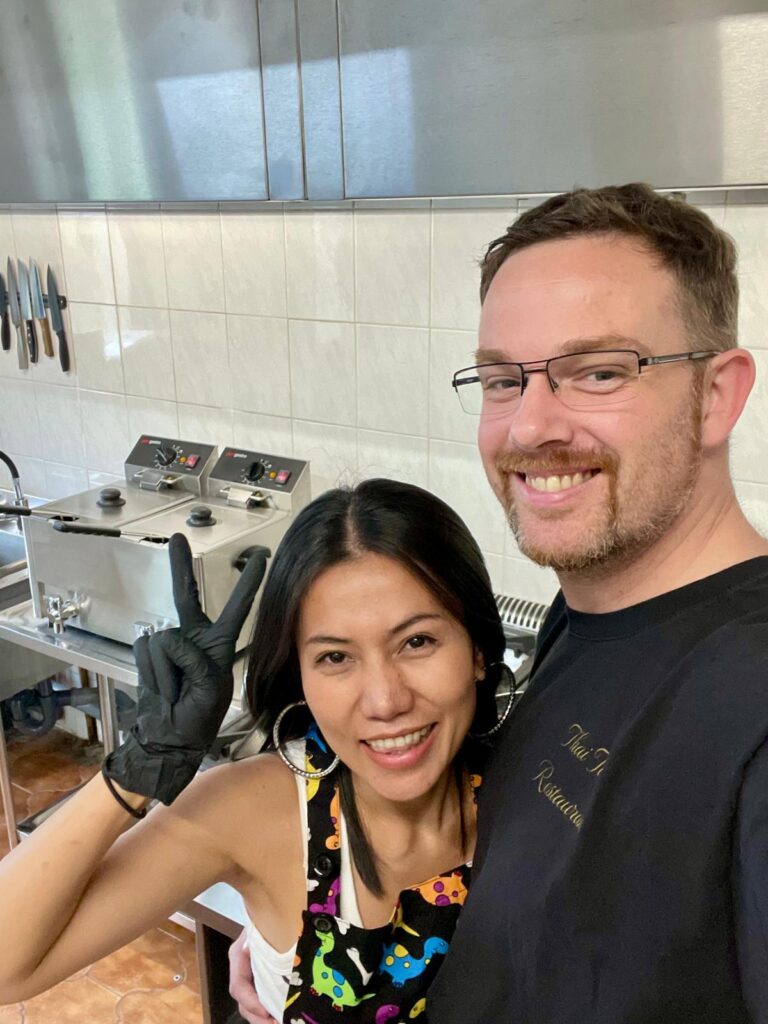 Mon épouse est née en Thaïlande, dans une famille de cuisiniers. Chaque matin, ses parents se levaient tôt pour préparer les plats typiques de la street food thaïlandaise qu’ils vendaient sur les marchés. Ce savoir-faire, elle ne l’a pas seulement appris — elle l’a dans le sang.